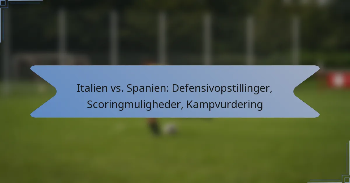 Italien og Spanien viser kontrasterende defensive opsætninger, der fremhæver deres unikke taktiske filosofier, hvor Italien foretrækker en kompakt forsvar og Spanien fokuserer på boldbesiddelse og høj pres. Deres tilgange til at skabe scoringsmuligheder adskiller sig også, da Italien er afhængig af struktureret opbygning og hurtige overgange, mens Spanien prioriterer indviklet pasning. En evaluering af deres kampe afslører et konkurrencepræget rivalisering, hvor stærke forsvar og evnen til at udnytte scoringsmuligheder ofte dikterer udfaldet.