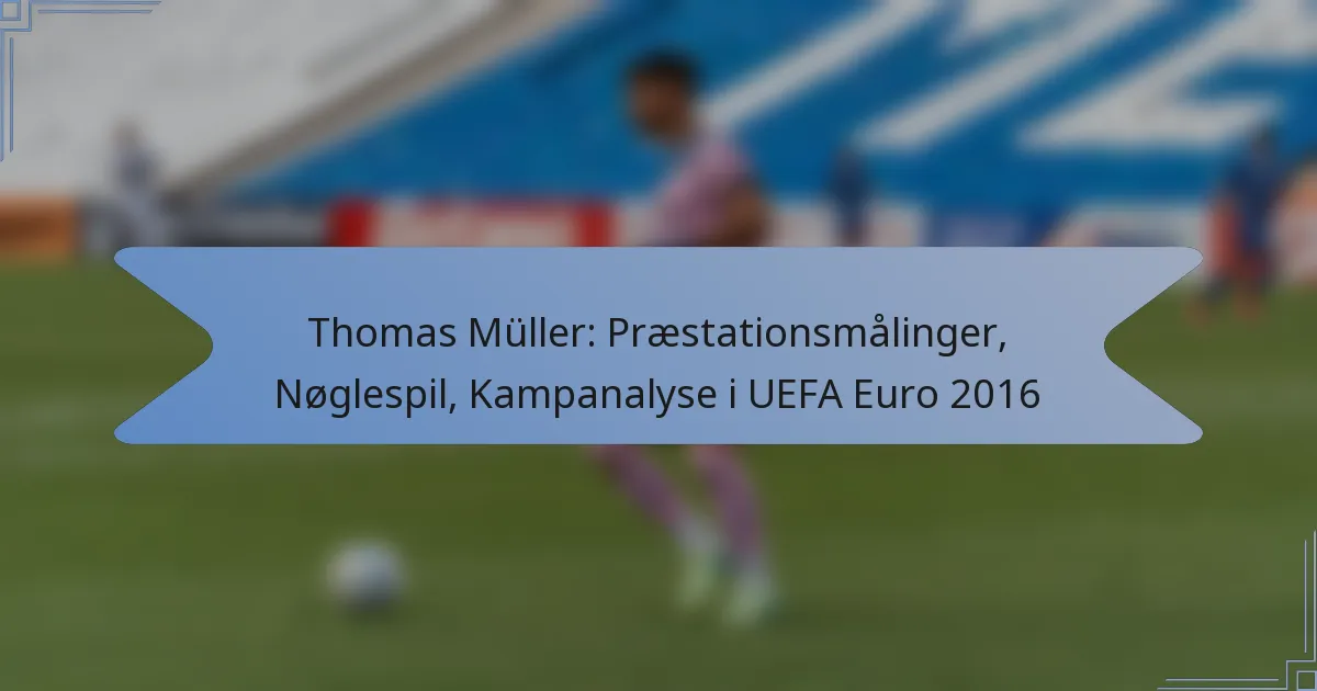 Thomas Müller havde en betydelig indflydelse under UEFA Euro 2016, hvor han viste sine færdigheder gennem forskellige præstationsmålinger. Hans bidrag omfattede mål, assists og generel indflydelse på kampen, som er kritiske for at evaluere hans effektivitet i turneringen.